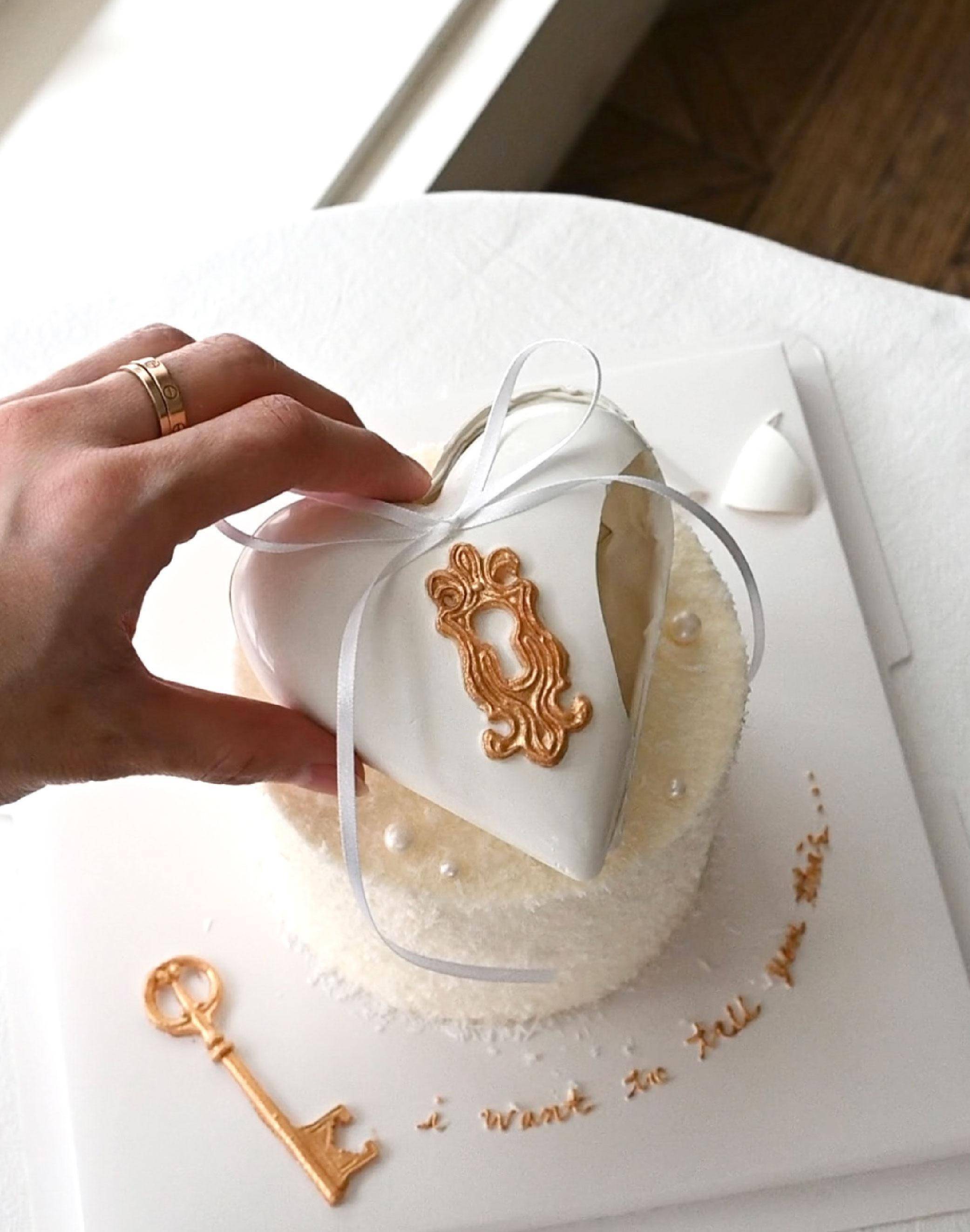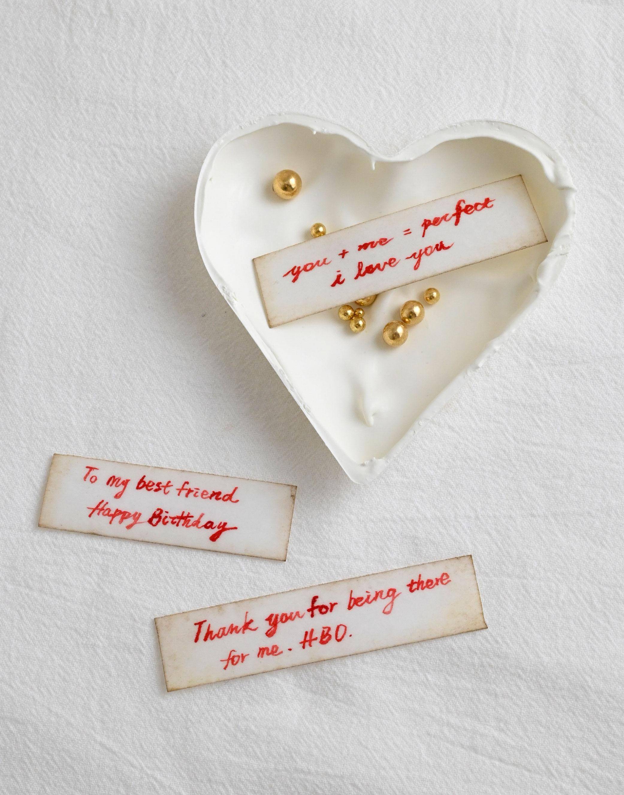 ✤ 白巧克力愛心內的糯米紙信籤可以吃~